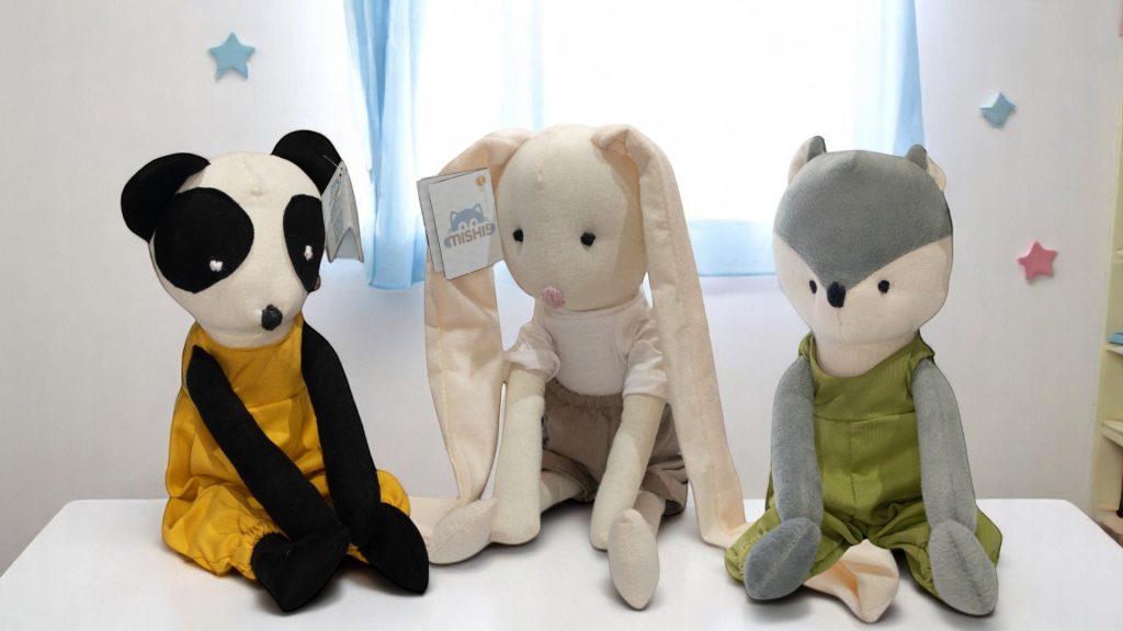 Los Mishis están hechos de manta, bordados a mano, por lo que son únicos, y ecológicos. Su diseño se realizó en colaboración con expertos en Psicología para lograr apoyo emocional, con telas y colores amigables, que ayudan a generar una sensación de tranquilidad.